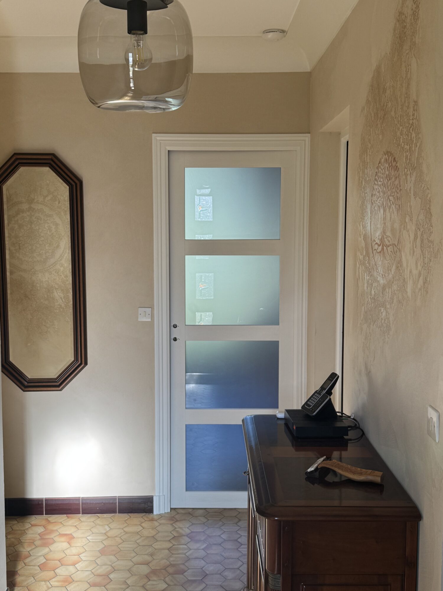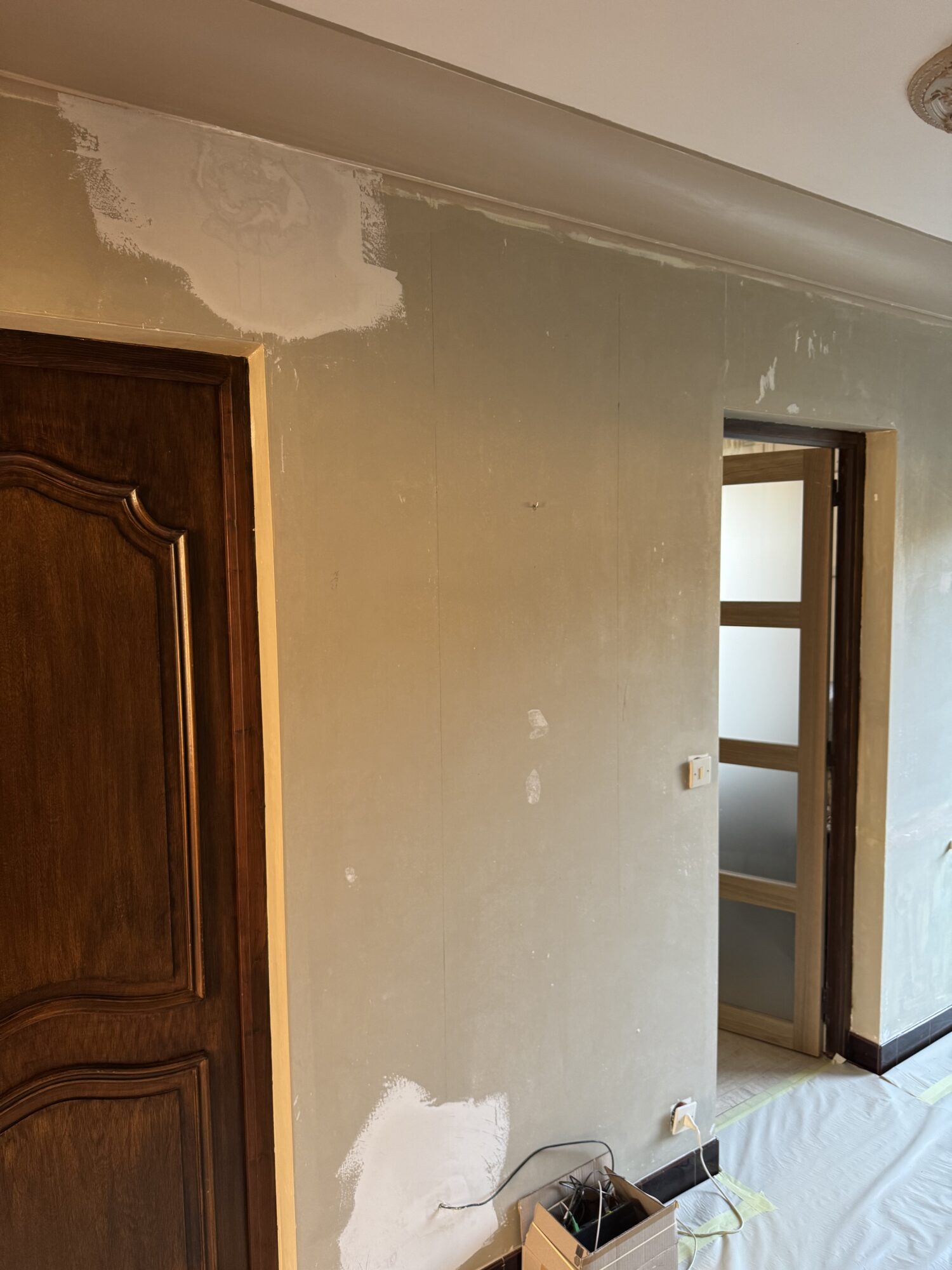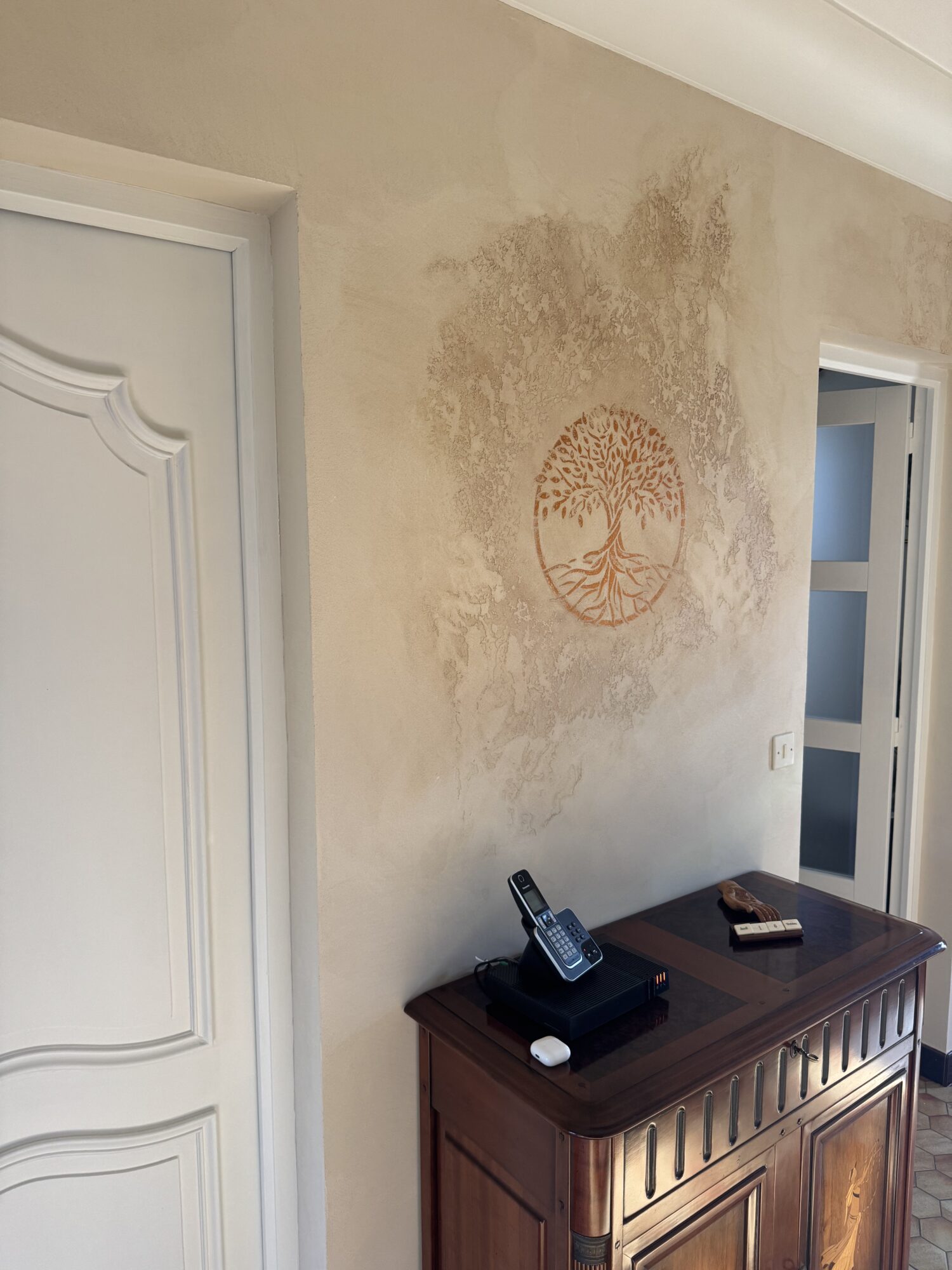 Pour transformer cette entrée, nous avons réalisé un enduit décoratif qui apporte texture et profondeur dès le premier regard.